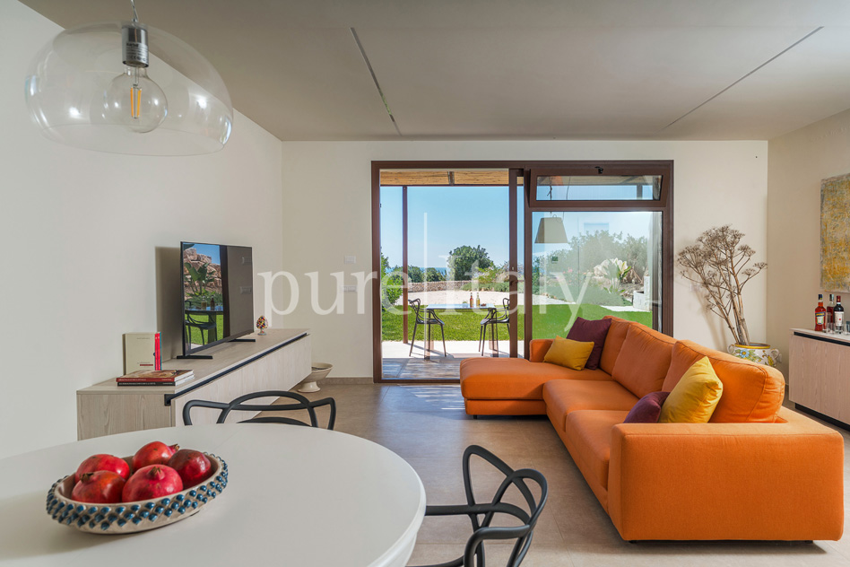 An oasis of refined comfort and panoramic sea views. This is Gelso Bianco, a beautiful residence with swimming pool located near Scicli. Surrounded by a well-kept and lush Mediterranean garden, the villa has a beautiful infinity pool and large sun terrace with garden furniture, ideal for relaxing breakfasts and enjoying time spent together. These exclusive and inviting outdoor spaces are joined by the welcoming indoor environments that include a bright living room and dining area with an expansive glass panels opening out onto the terrace, a kitchen, two double bedrooms with walk-in closet and private bathroom, along with a bedroom with two single beds and another bathroom, also with shower. The annex instead consists of a living room with kitchenette and a double bedroom with bathroom. The villa even has air-conditioning and heat pumps in all rooms, Wi-Fi internet connection, television, washing machine and dishwasher, American coffee and espresso machine, ice-maker and barbecue. The sizable property also contains another villa that, in turn, has a swimming pool, terraces and private garden. From Gelso Bianco, you can easily drive to the most beautiful baroque towns of the Val di Noto and even Syracuse and the renowned seaside villages of Sampieri, Donnalucata, Punta Secca, Marina di Ragusa, Portopalo and Marzamemi.